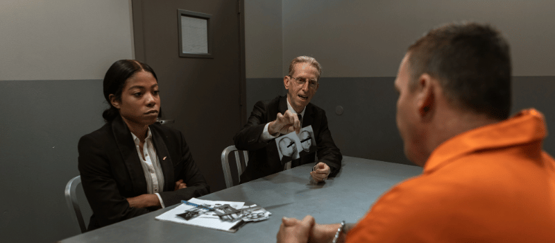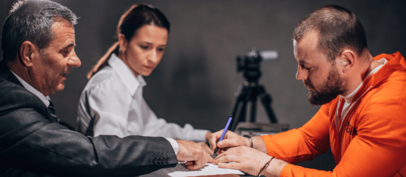 Representação durante o processo judicial que determina se é culpado ou inocência em relação a um crime